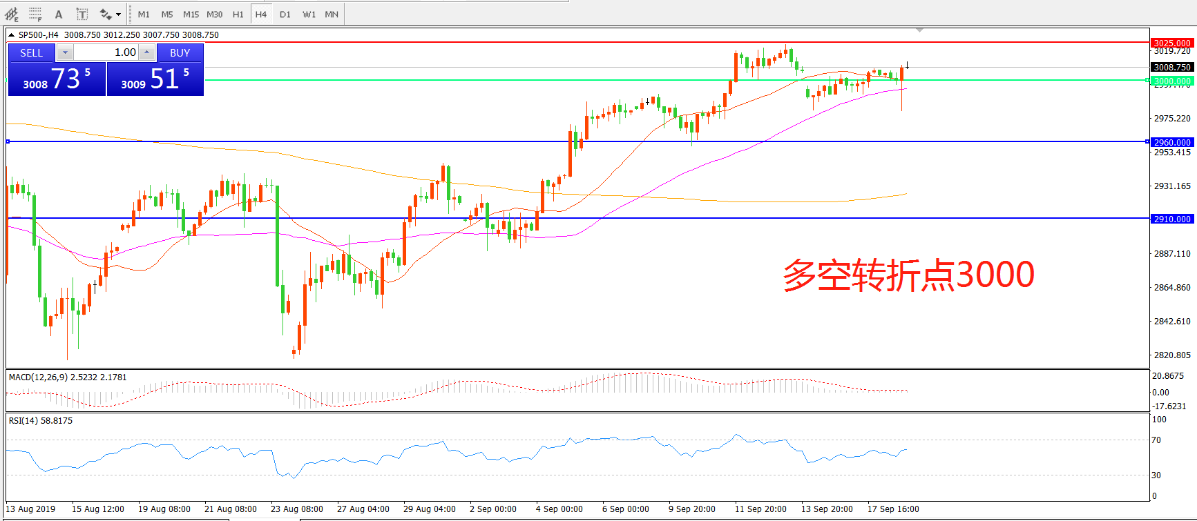 多空转折点:3000.00