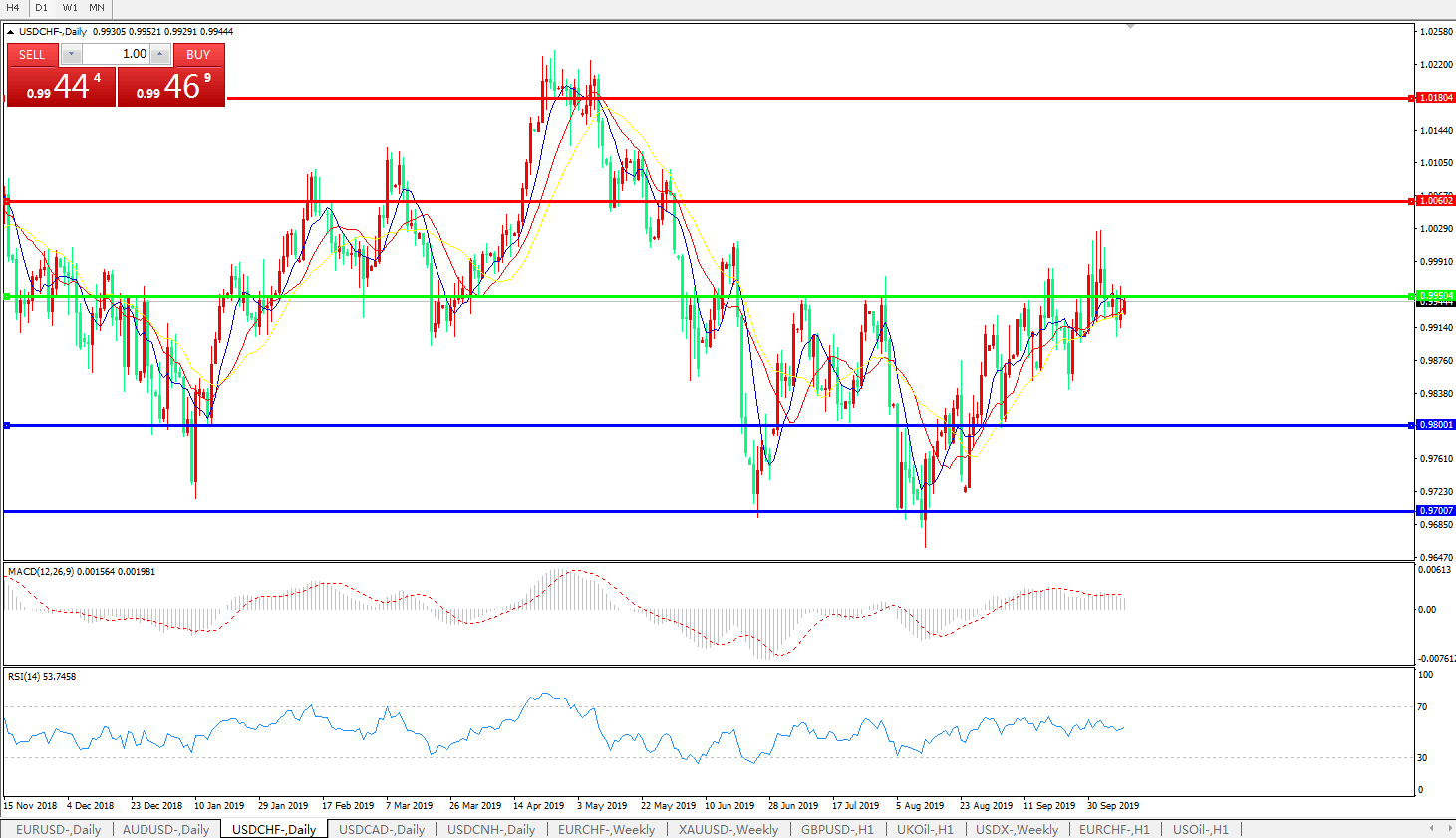 交易策略:0.9950下方看跌,目标0.98000.9700