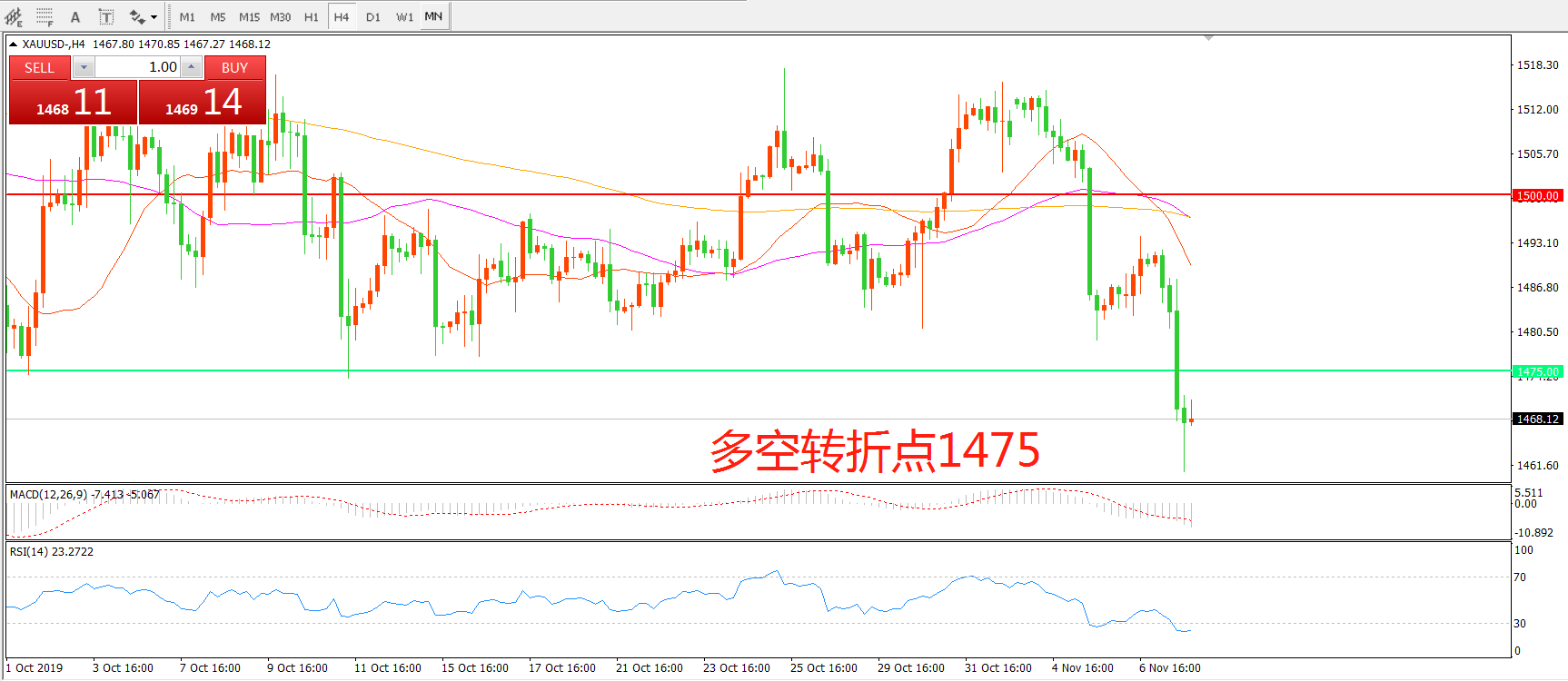 交易策略:在1475.00之下看跌,目标1450.00   1400.00