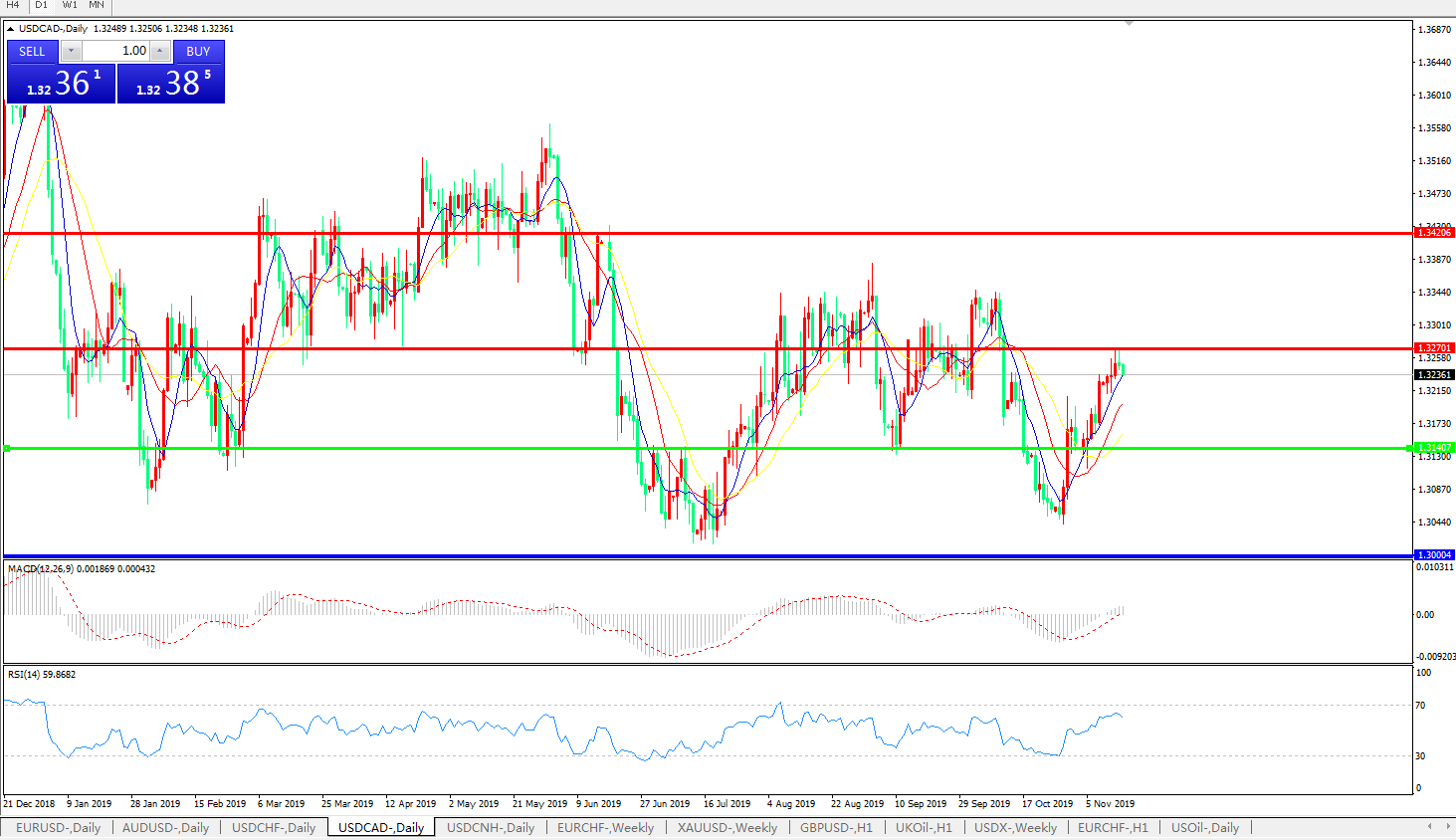 美元兑加元USDCAD 日线图: