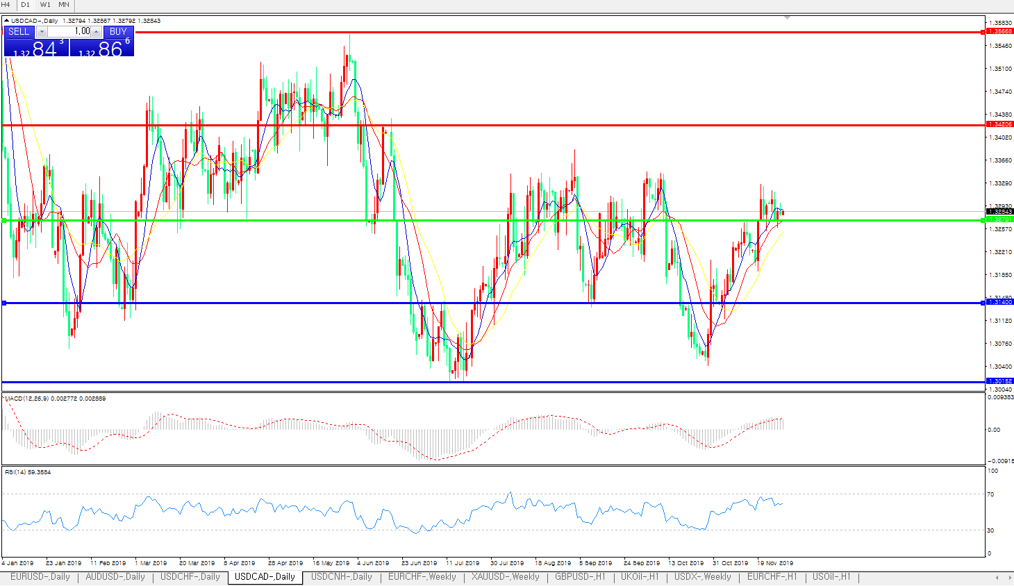 美元兑加元USDCAD 日线图: