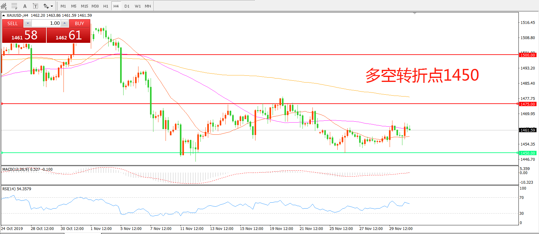 多空转折点:1450.00