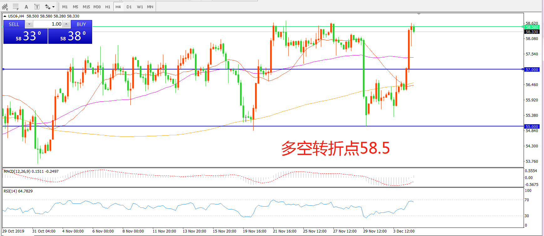 周三(12月4日) 美国能源信息署表示,截至11月29日当周,美国原油库存减少490万桶,远超预期,而伊拉克石油部长嘉班对记者表示,一些主要成员国倾向于加大减产力度。EIA库存降幅超过预期,且OPEC有望进一步减产提振了原油价格,WTI原油上涨逾4%,收报58.42美元/桶,OPEC成员国将于周四举行会议,OPEC+将于周五举行会议,务必重点关注。