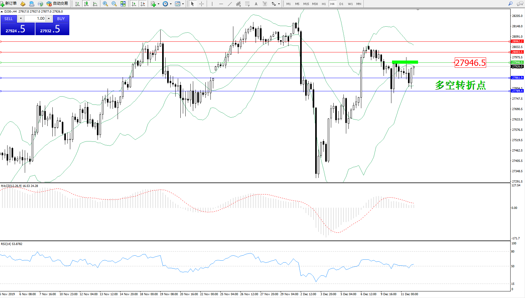 道琼斯指数12月11日(周三)收盘上涨29.40点,涨幅0.11%,报27911.09点。美联储决议按兵不动一如预期,措辞中规中矩市场反响平淡;所有票委一致同意维稳利率不变,经济展望报告同时下调了未来失业和通胀预期,而点阵图则显示2020年全年利率将维持不变,再度加息最早要到2020年。总体来看,美联储对于经济状况给出了谨慎乐观的预期,与市场预期偏离很小,其观望姿态已成市场共识。