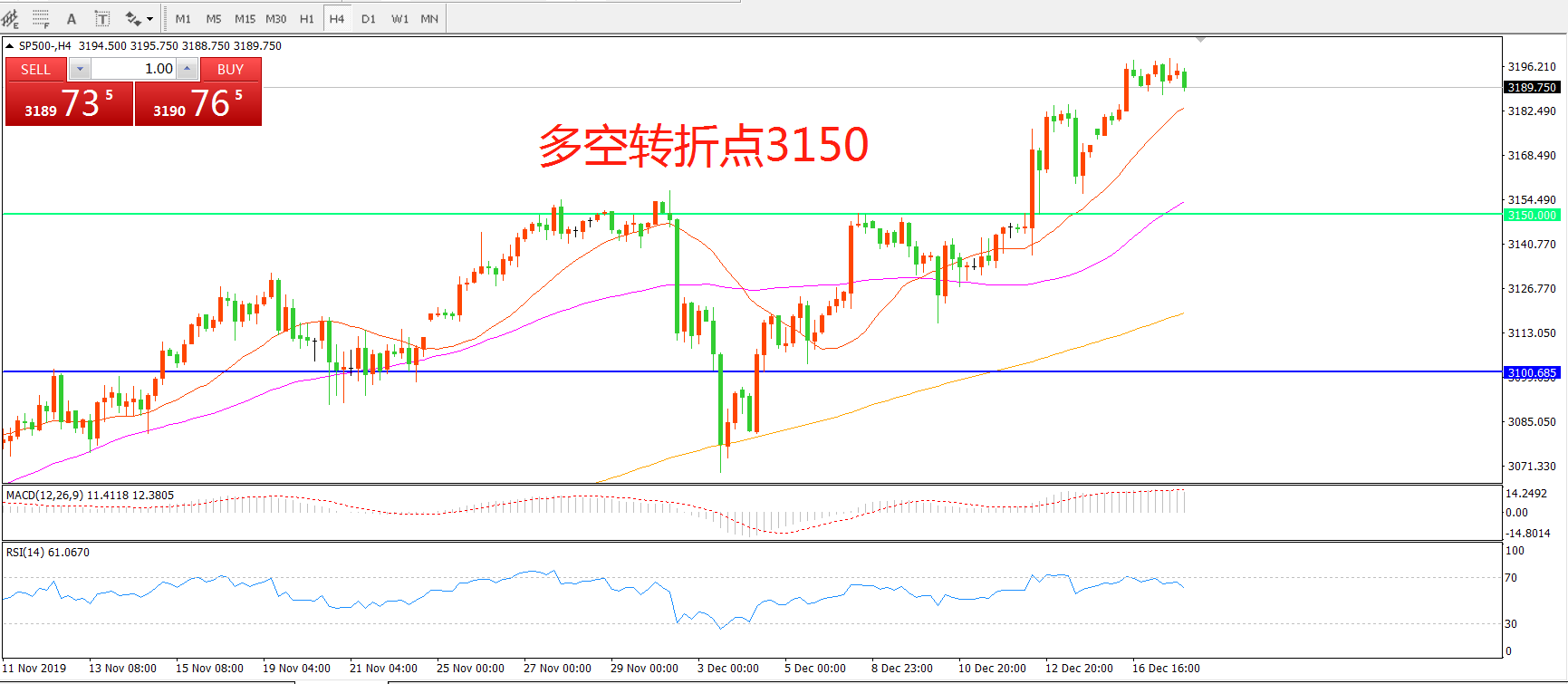 多空转折点:3150.00
