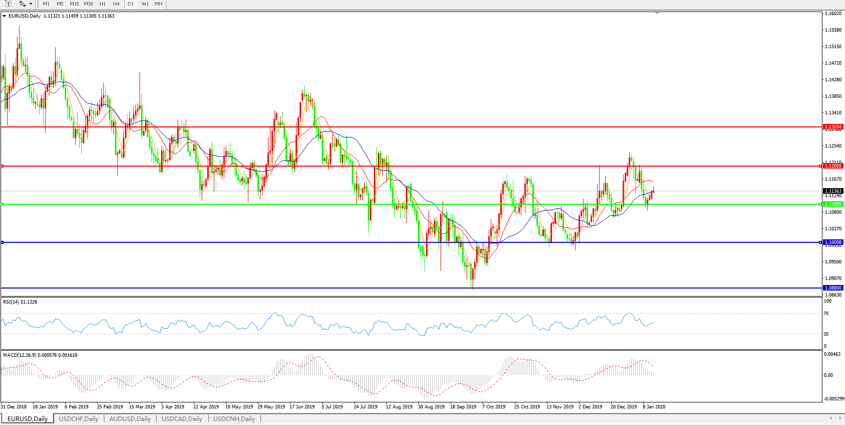 技术面简析:日图短期均线开始形成死叉汇价连续反弹暂时企稳1.11关口但但卖压依旧沉重MACD开始下行且量能快速萎缩 RSI缓步走低,预计汇价大概率将弱势整理,重点关注下方1.11关口的支撑