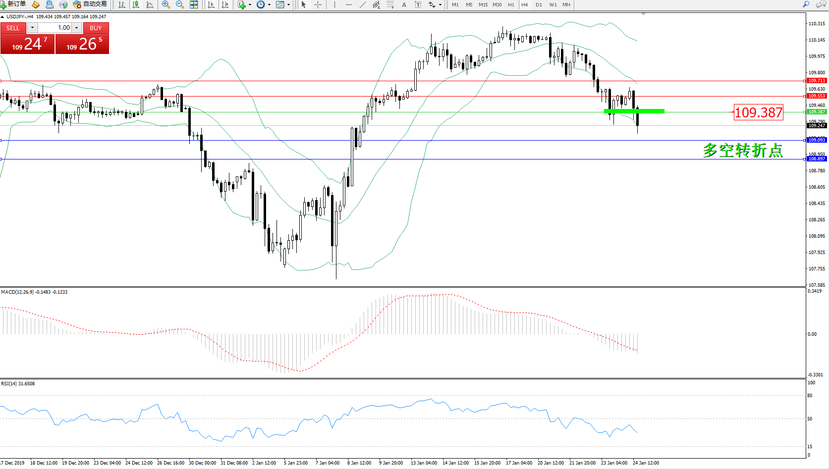 交易策略:109.387下方看跌,目标109.093108.897