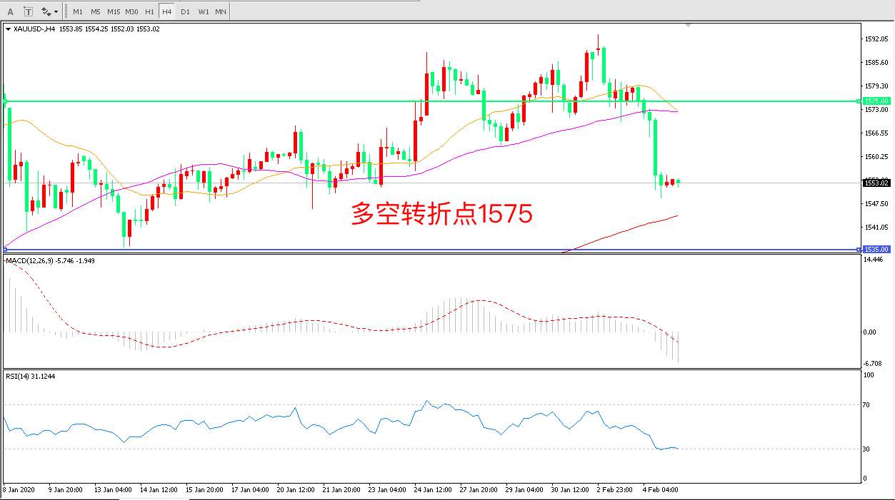 多空转折点:1575.00