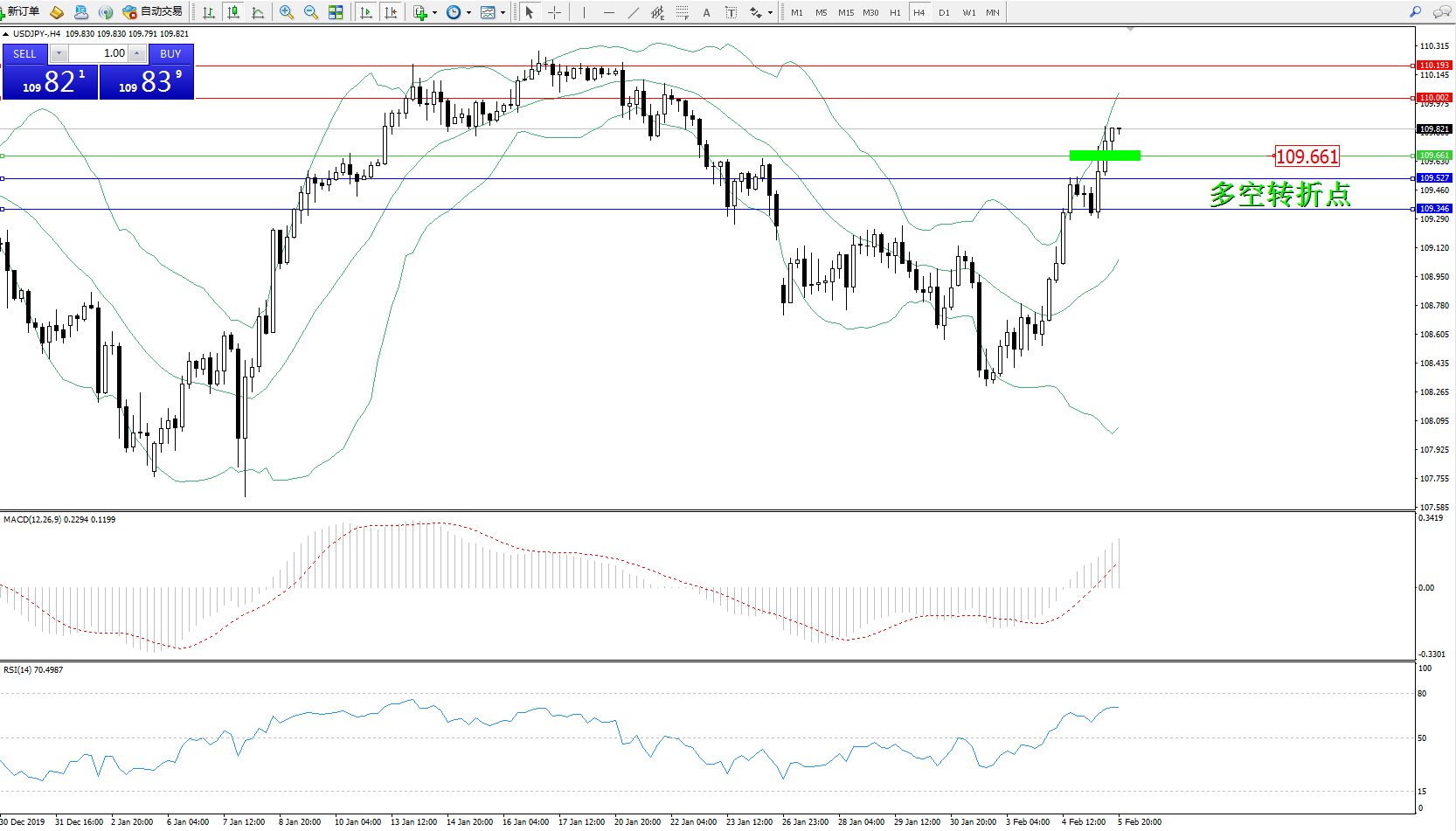 交易策略:109.661上方看涨,目标110.002、110.193