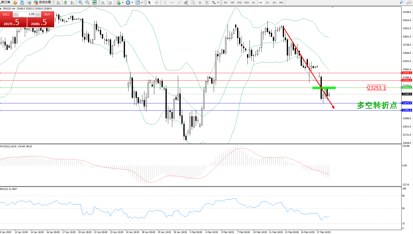 日经225指数2月18日(周二)收盘下跌343.24点,跌幅1.46%,报23180.00点。日内亚洲股市纷纷下跌,其中日韩股指跌幅较大,投资者对公共卫生事件冲击经济的担忧情绪并未消散,多数经济学家预计卫生风险将把日本推向衰退,日本限制半导体3种核心材料对韩出口已经8个月,韩国产业通商资源部17日在青瓦台进行工作报告时表示,将力争实现材料、零部件和设备的自给自足,在今年内完全消除日本限制出口3种材料所带来的供应紧张。