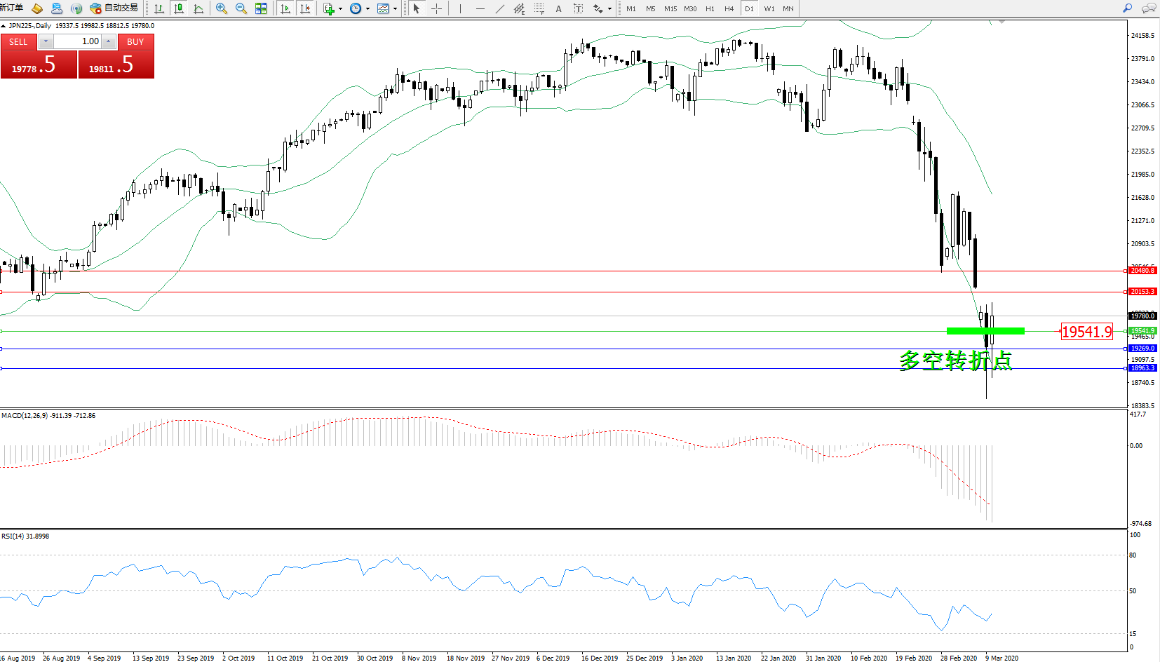 日经225指数310日(周二)收盘上涨208.00点,涨幅1.06%,报19840.50点。日内风险偏好情绪回暖,亚洲股市大幅走高,国内股市更是表现强势,同时投资者押注全球宽松将持续,这可能缓解目前的悲观经济预期,因避险买盘减弱,美国总统特朗普表示将寻求下调薪资税,并且给受影响的行业提供“极具实质性的纾困措施”。在特朗普政府考虑减税的消息影响下,目前对于风险情绪反弹是一个时机点。今日向国会提交紧急措施法案,市场出现紧张不安的波动,正在制定第二份卫生风险应对紧急方案,如有需要,将会与日本央行合作采取合适的措施,将会与金融机构、日本央行及其他国家保持密切沟通,并根据G7集团和G20的协议做出适当的回应,为应对卫生风险,将毫不犹豫的采取必要的措施,第二套紧急经济援助方案将包括针对就业、小型企业等领域的措施。