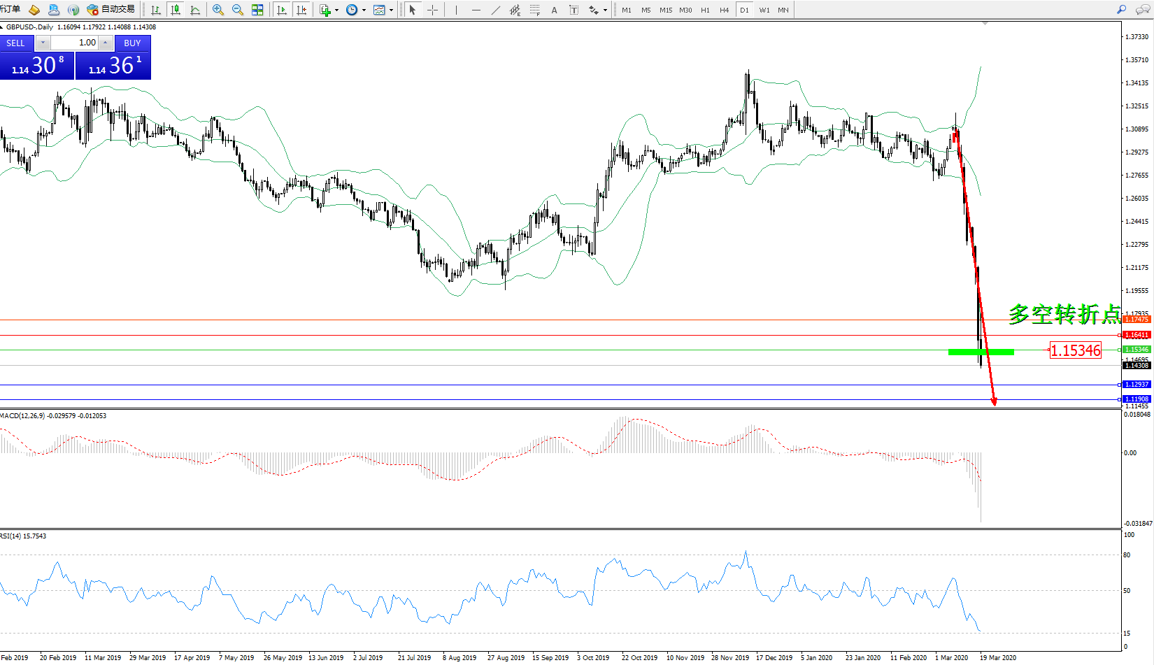 交易策略:1.15346下方看跌,目标1.129371.11908