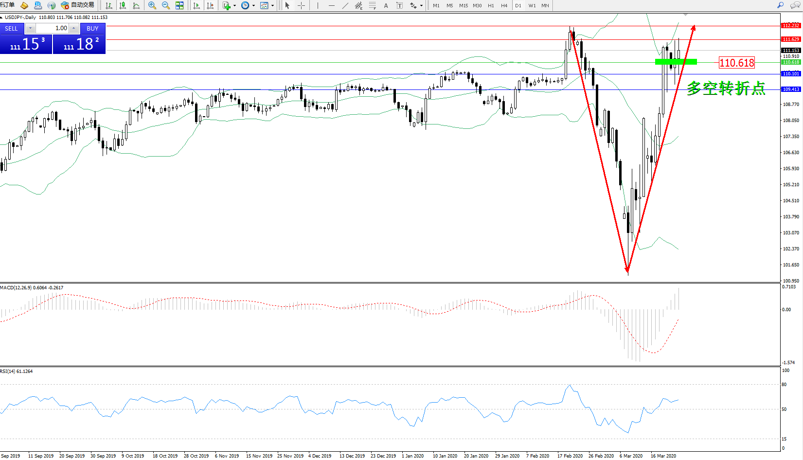 多空转折点:110.618