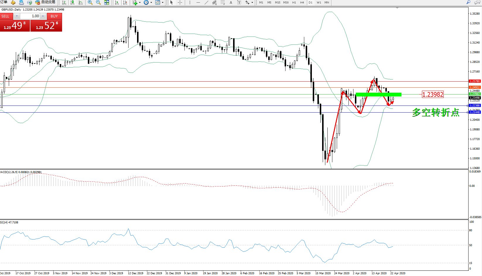 交易策略:1.23982下方看跌,目标1.22388、1.21448