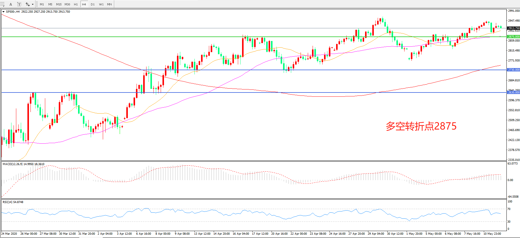 标普500 SP500   4小时图