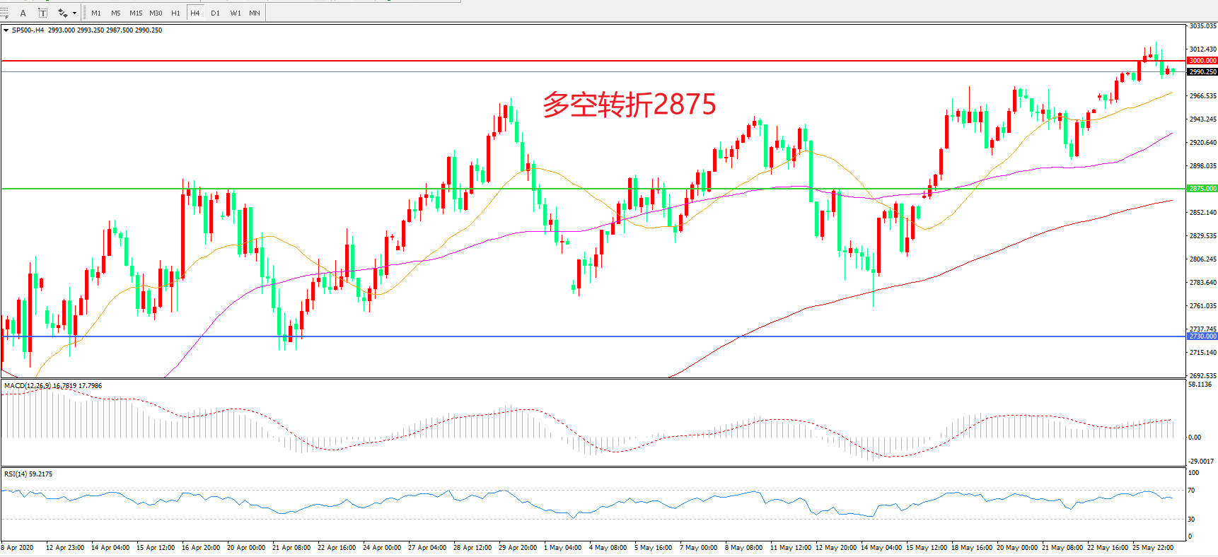 标普500 SP500   4小时图
