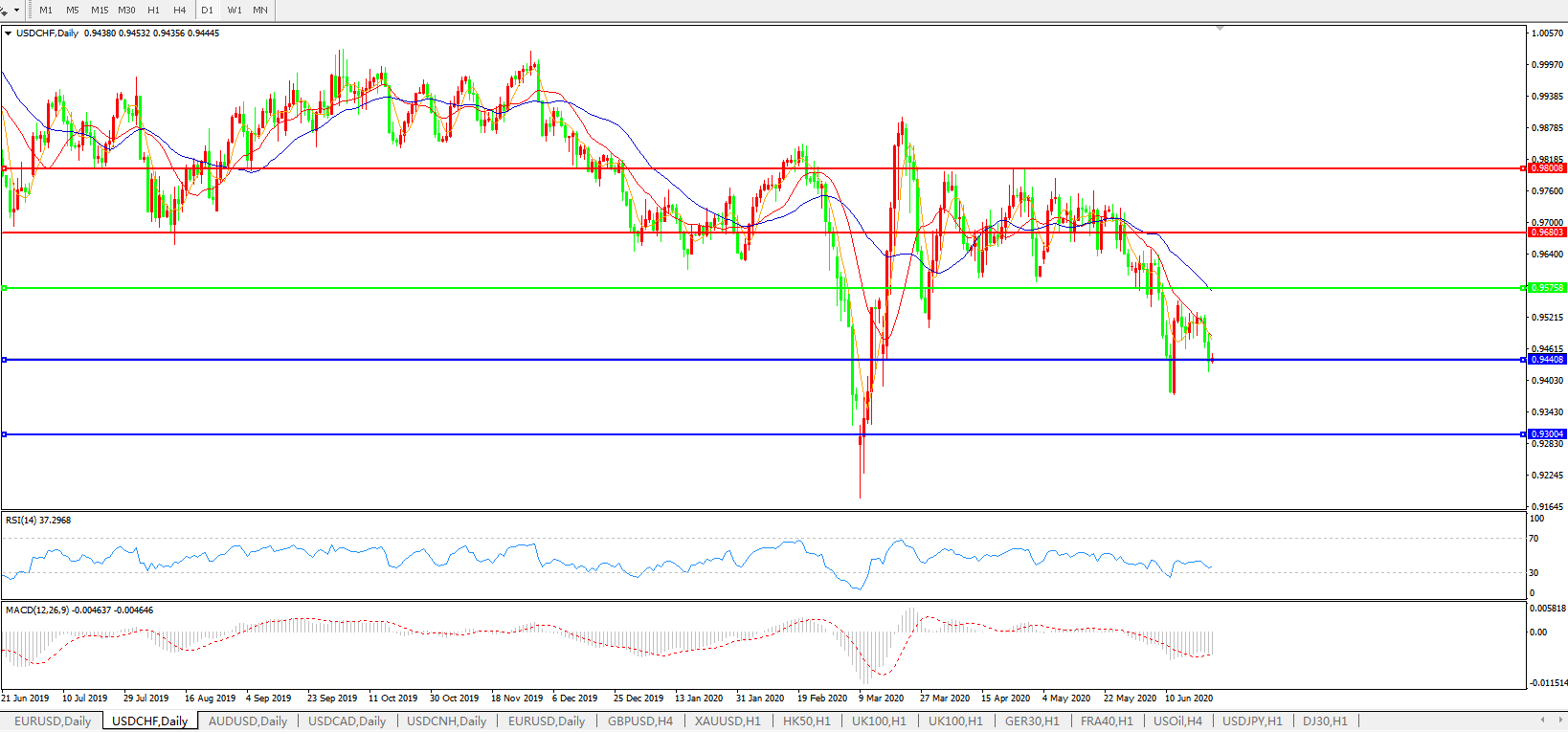 交易策略:0.9575下方看跌,目标0.9440、0.9300