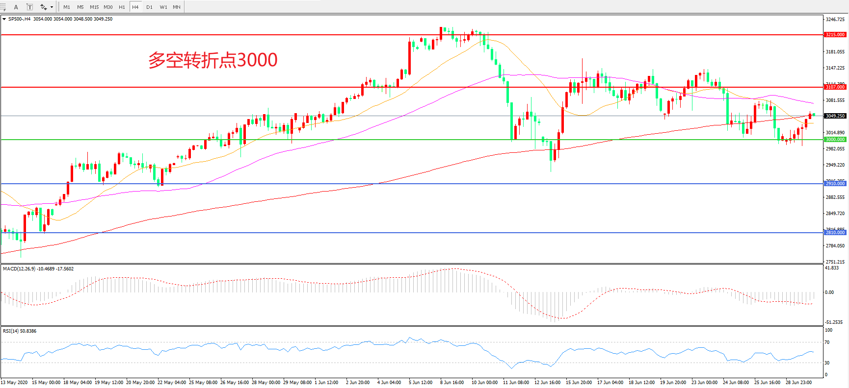 多空转折点:3000.00