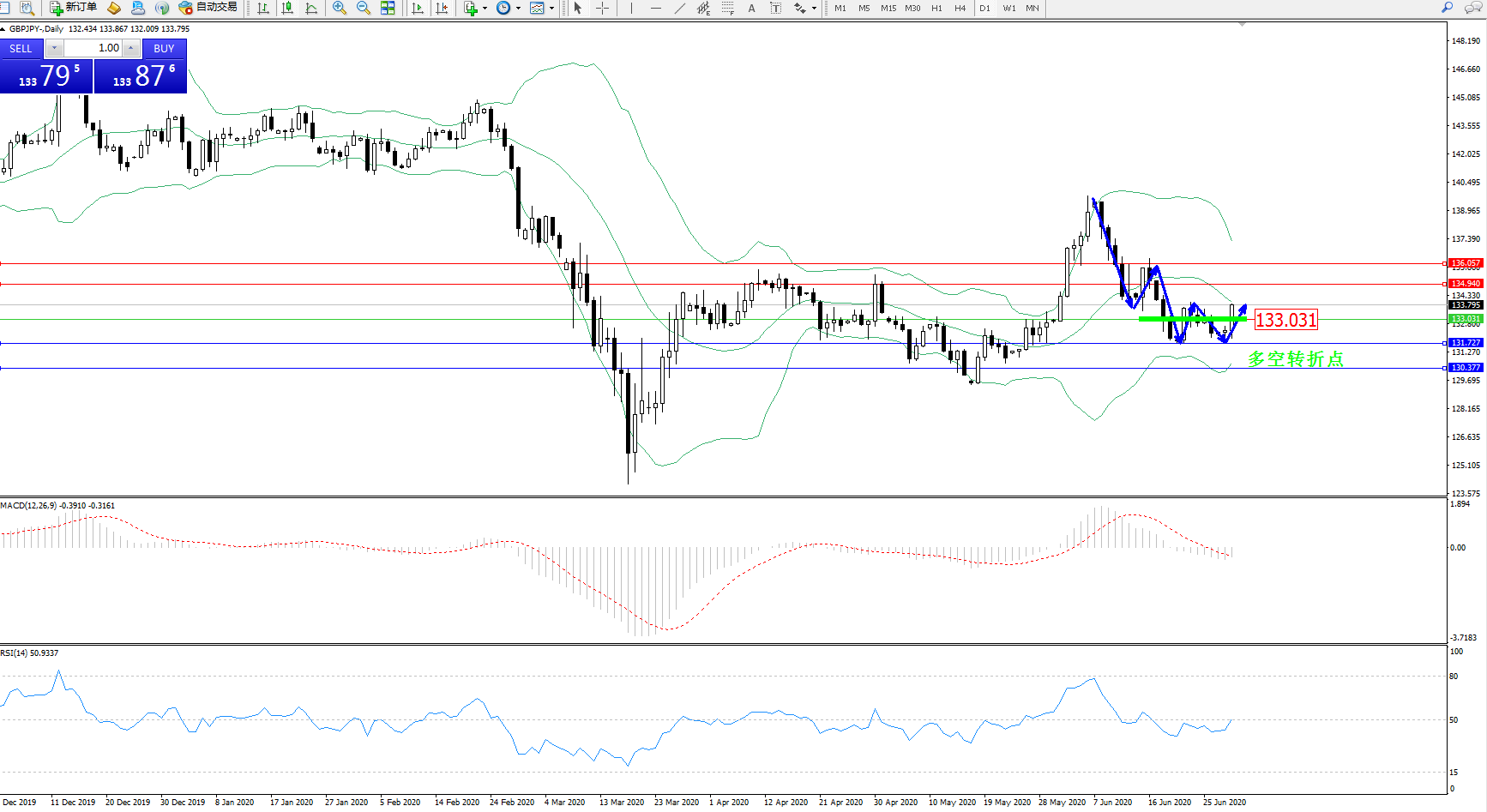 技术点评:高位空头动力呈阶梯式震荡回撤下行后,低位出现双底走势,底部多头动力伺机入场,有短暂反转上移态势,即将触及布林带指标中轨迹象,布林带指标呈收口走势中,且有继续下行态势,MACD指标处于0轴线下方空头区域弱势窄幅整理持续平移中,RSI指标处于50均衡线下方空头区域下方持续窄幅整理后维持震荡上移;