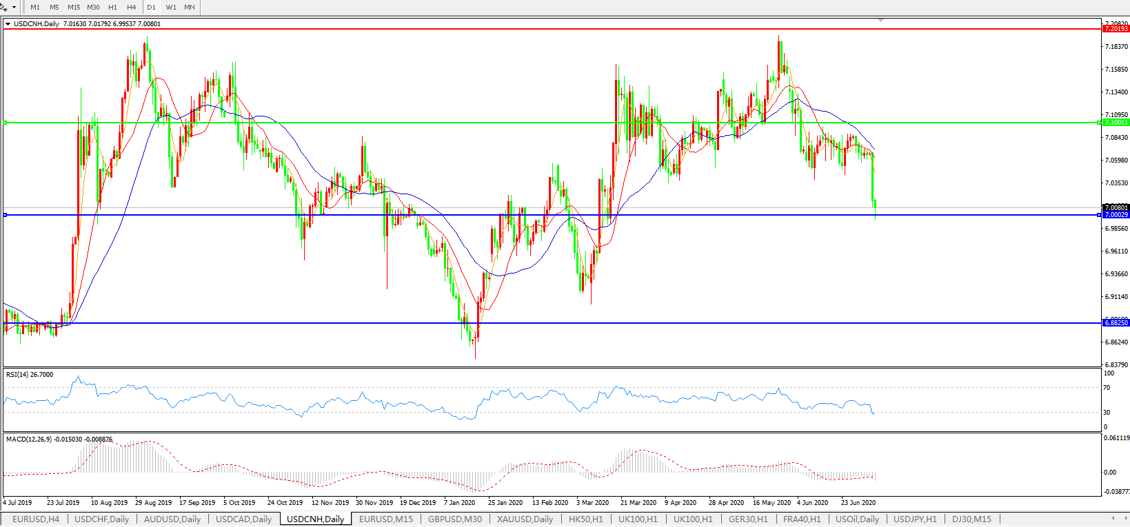 备选策略: 在7.1000之上,看涨,目标价位为7.2000,然后为7.3000。