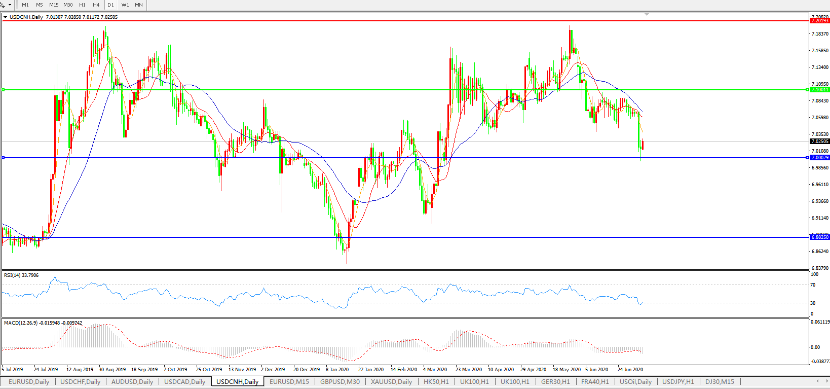 交易策略: 在7.1000之下,看跌,目标价位为7.0000,然后为6.8820。
