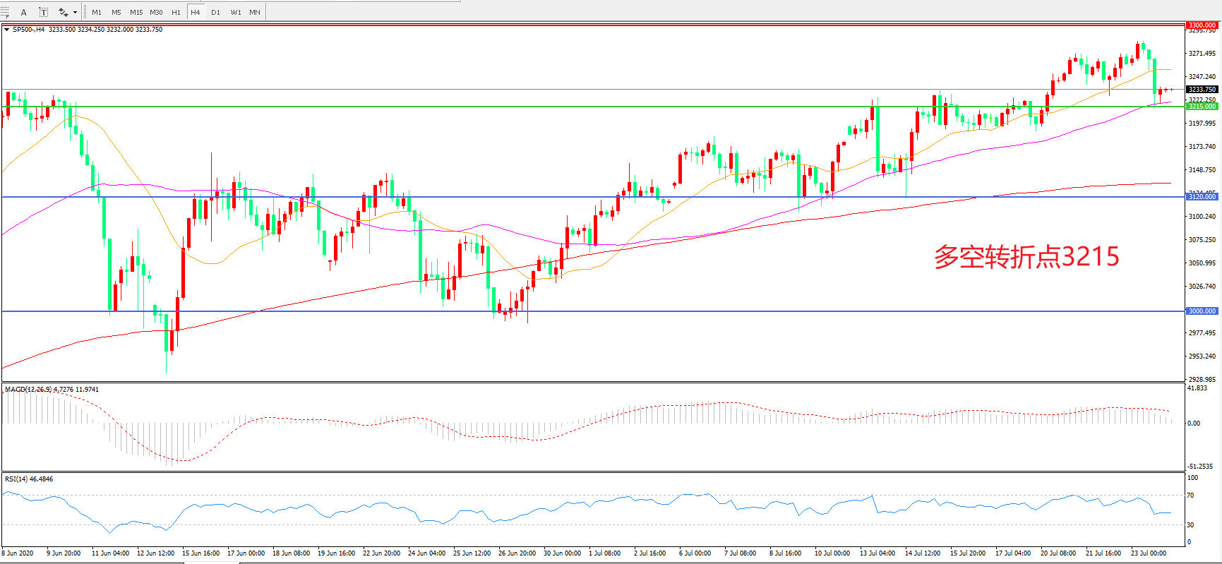 多空转折点:3215.00
