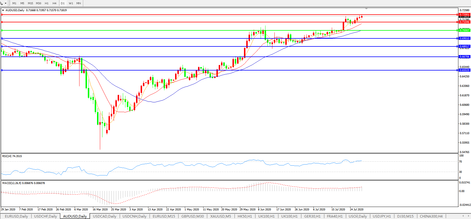 澳元兑美元AUDUSD    日线图: