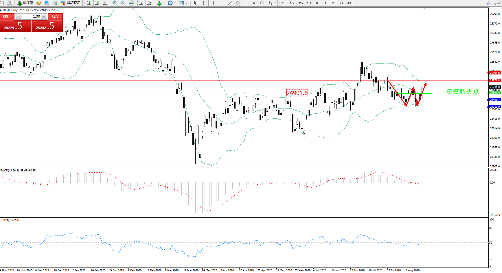 恒指HK50 ——日K线图显示:
