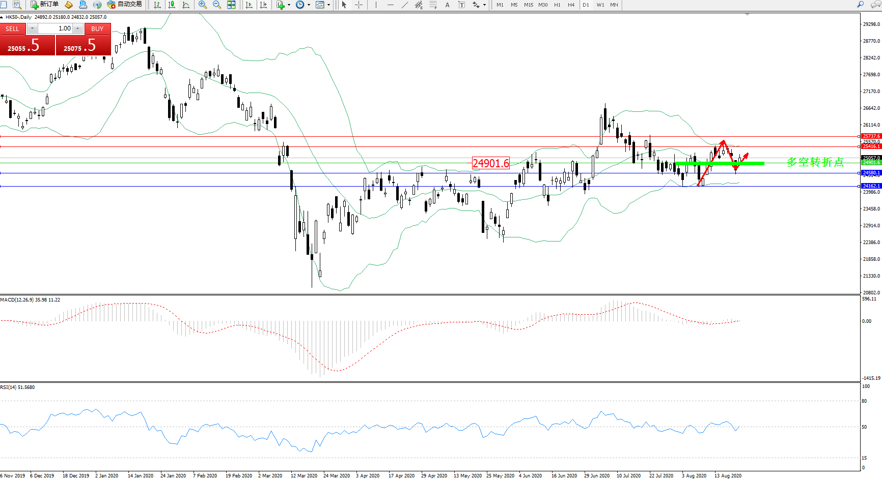 恒指HK50 ——日K线图显示: