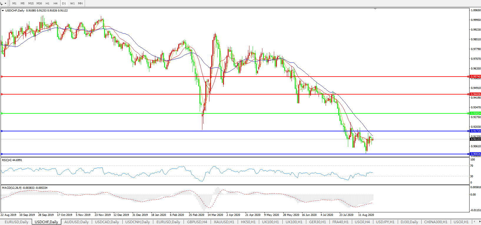 交易策略:0.9300下方看跌,目标0.9170、0.9000