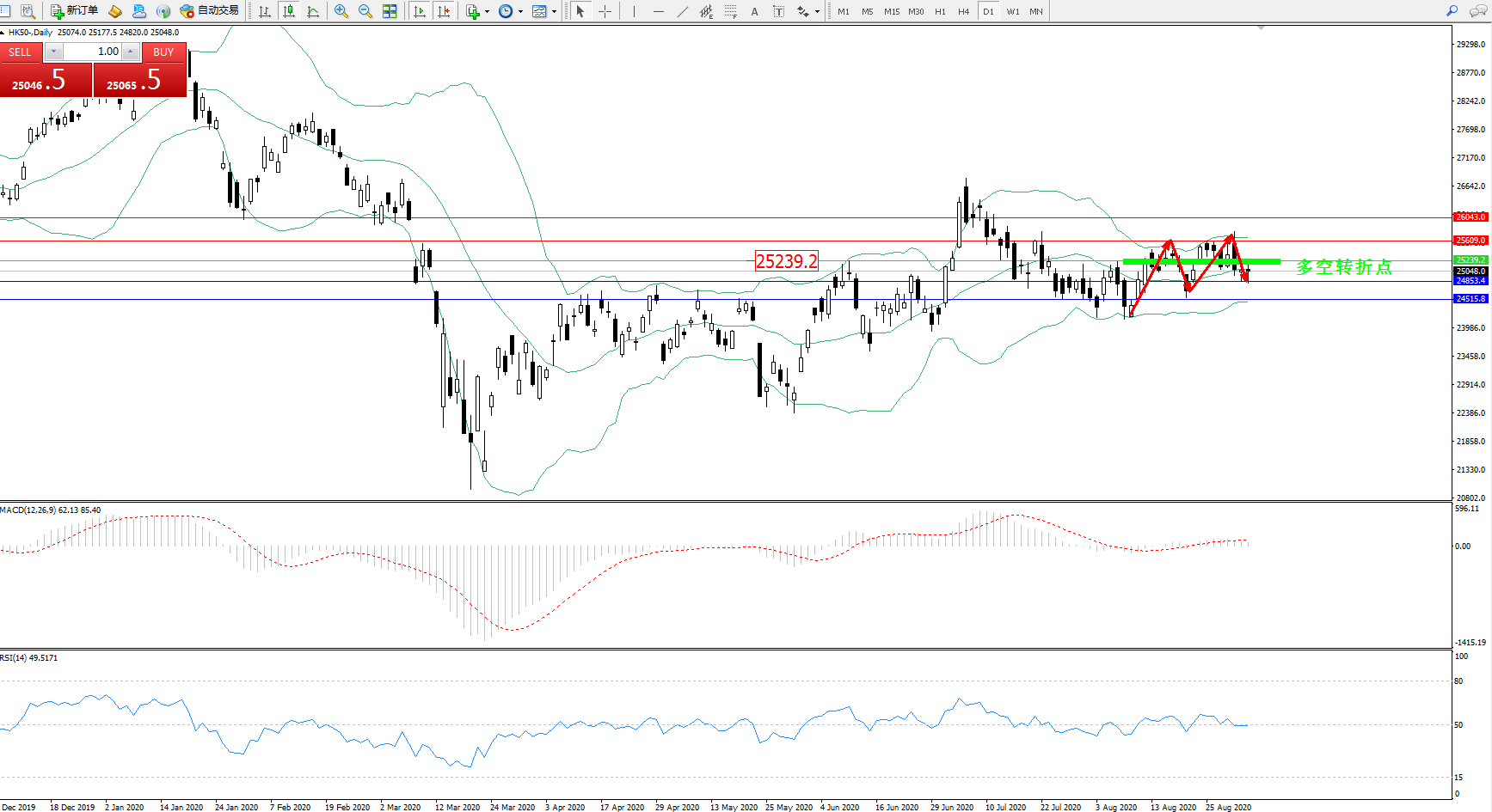 恒指HK50 ——日K线图显示: