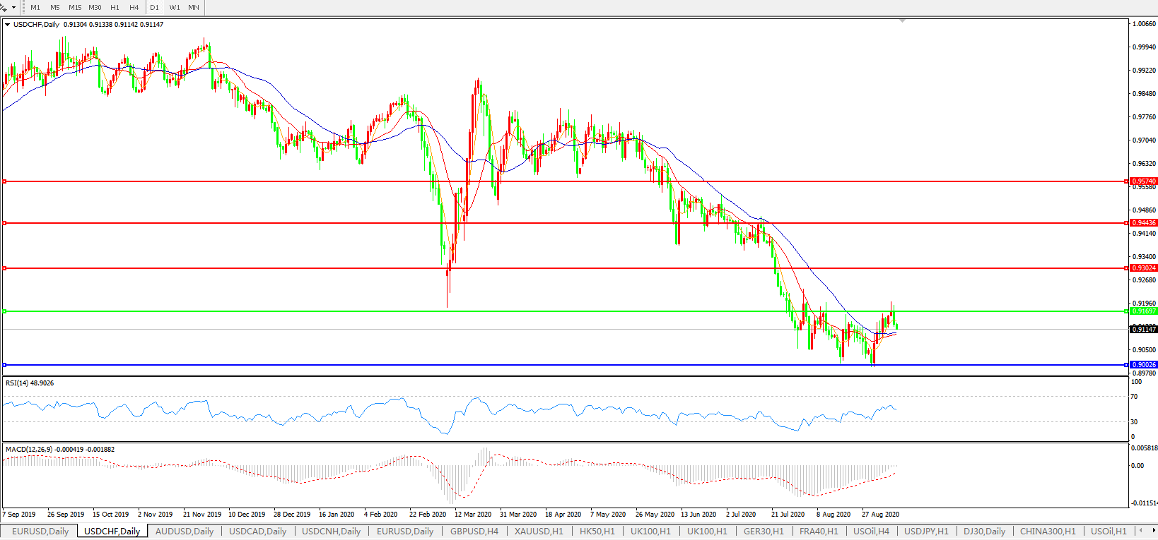 交易策略:0.9170下方看跌,目标0.9000、0.8950