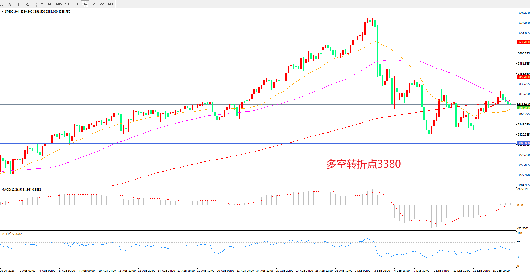 多空转折点:3380.00