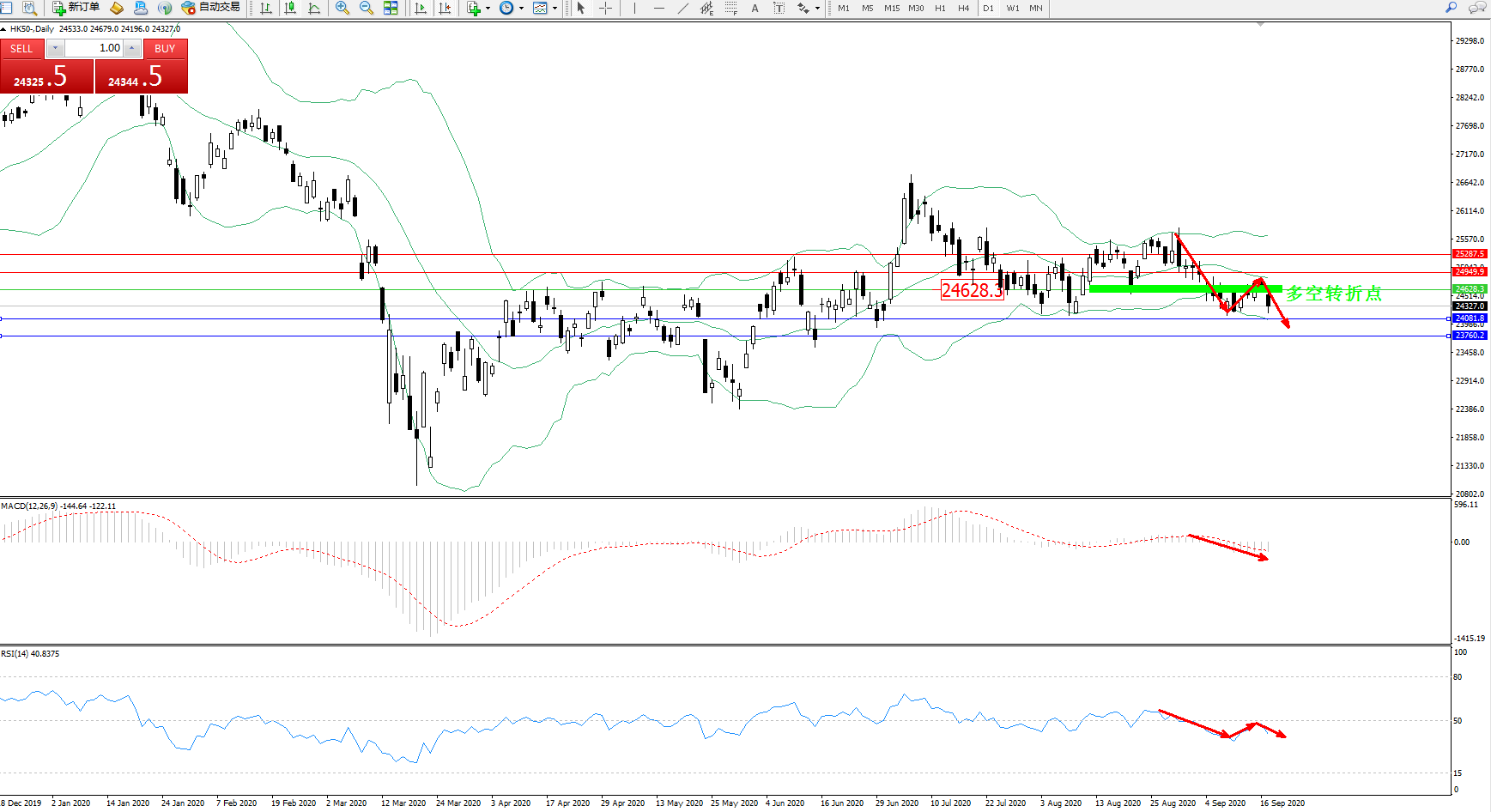 恒指HK50 ——日K线图显示:
