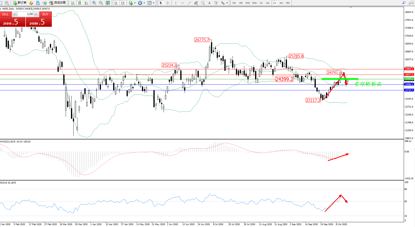 恒指HK50 ——日K线图显示: