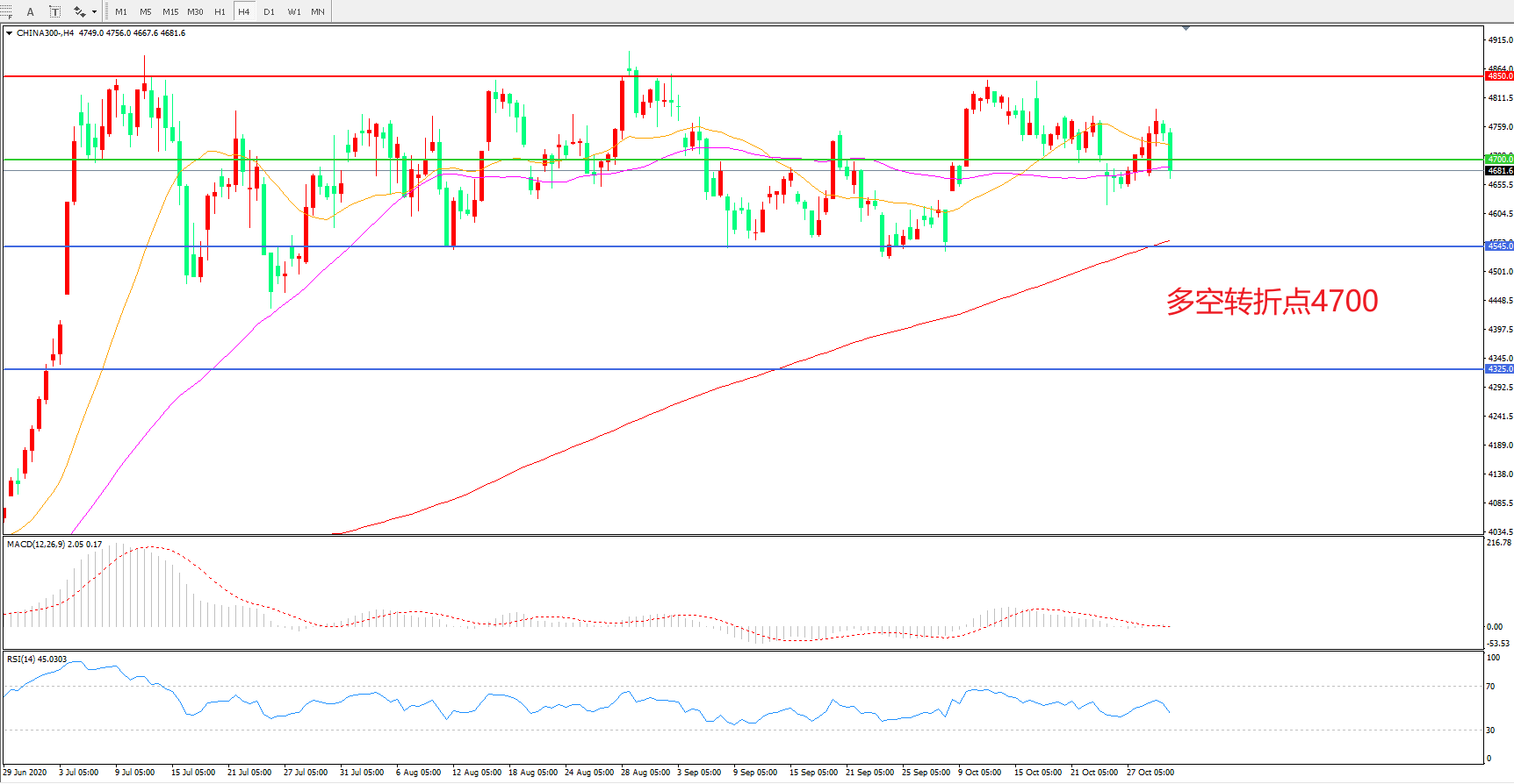 多空转折点:4700.00