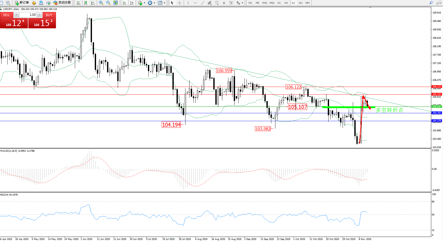 多空转折点:105.107