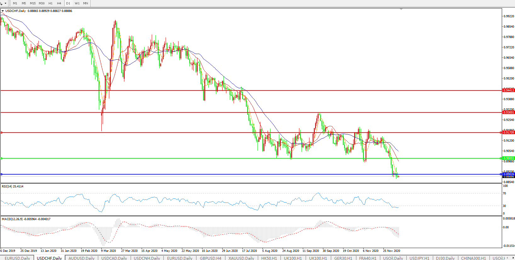 美元跌势短期缓和,美元兑瑞郎持续弱势