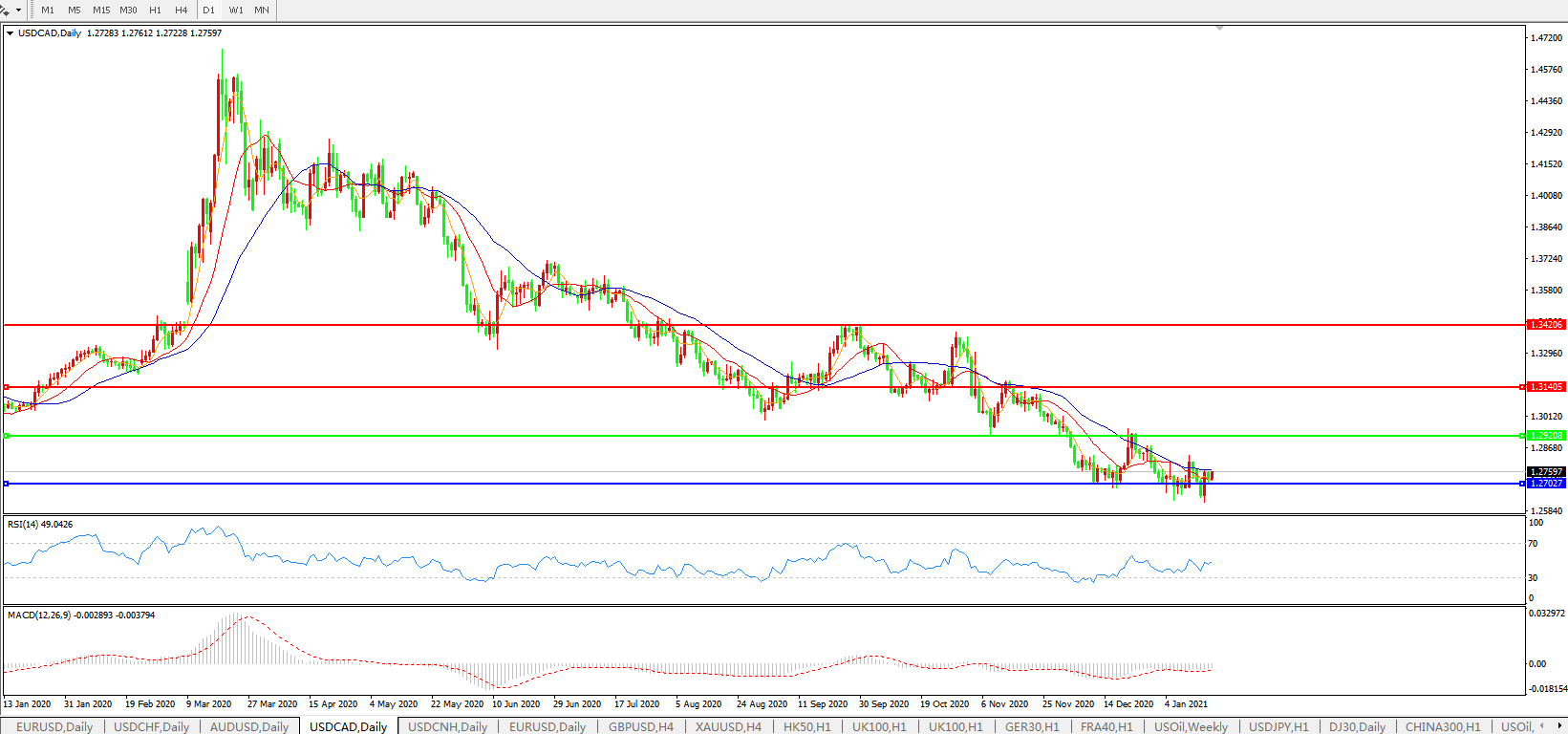 美元兑加元USDCAD    日线图: