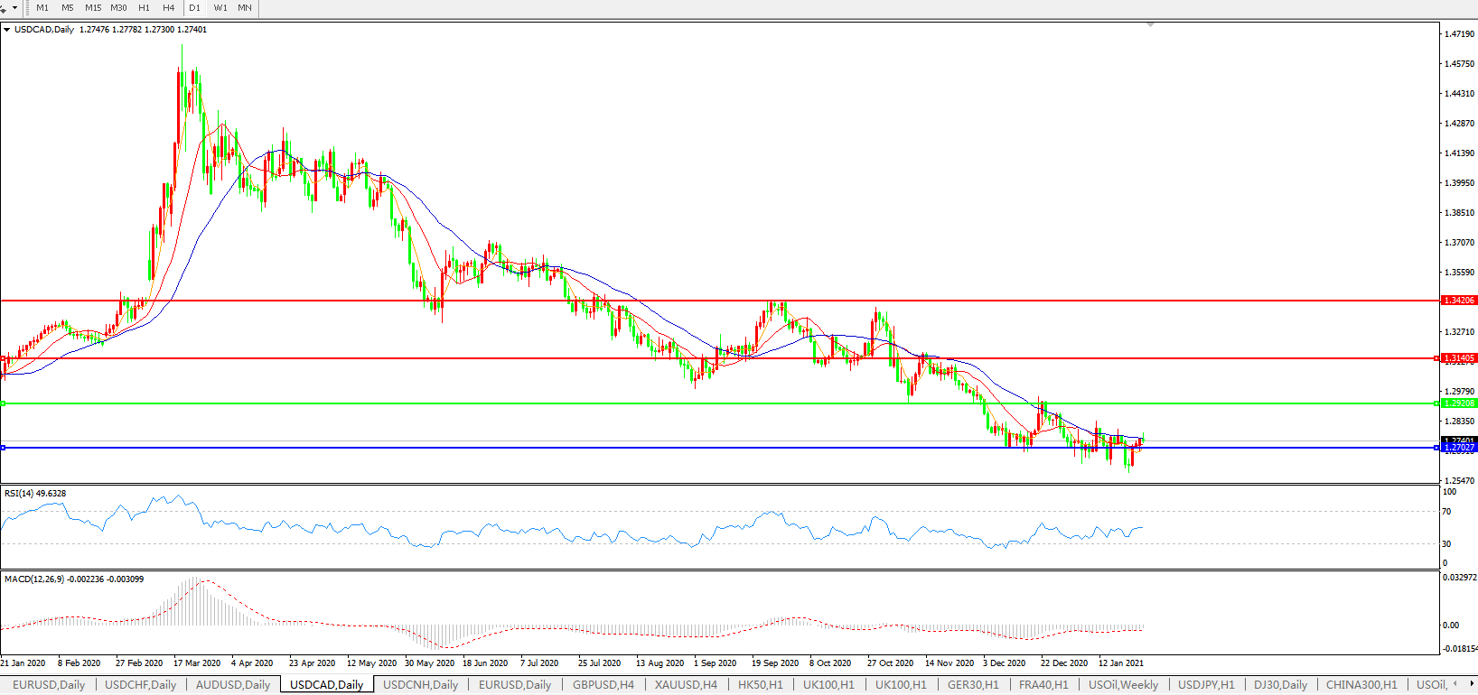 美元兑加元USDCAD    日线图: