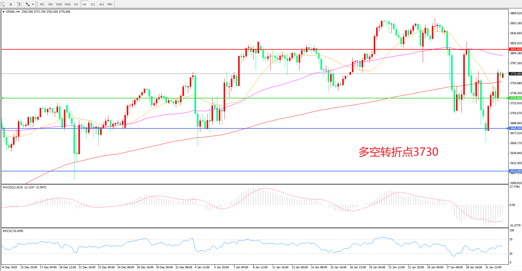 多空转折点:3730.00