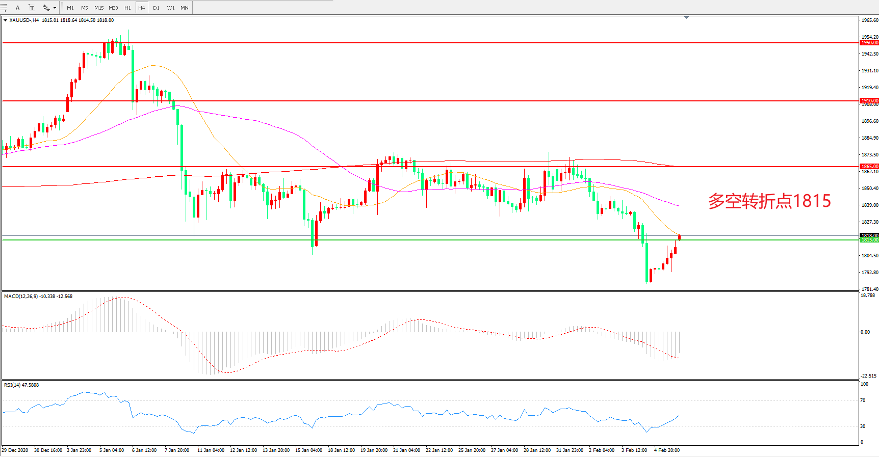 交易策略:在1815.00之下看跌,目标1765.00    1710.00