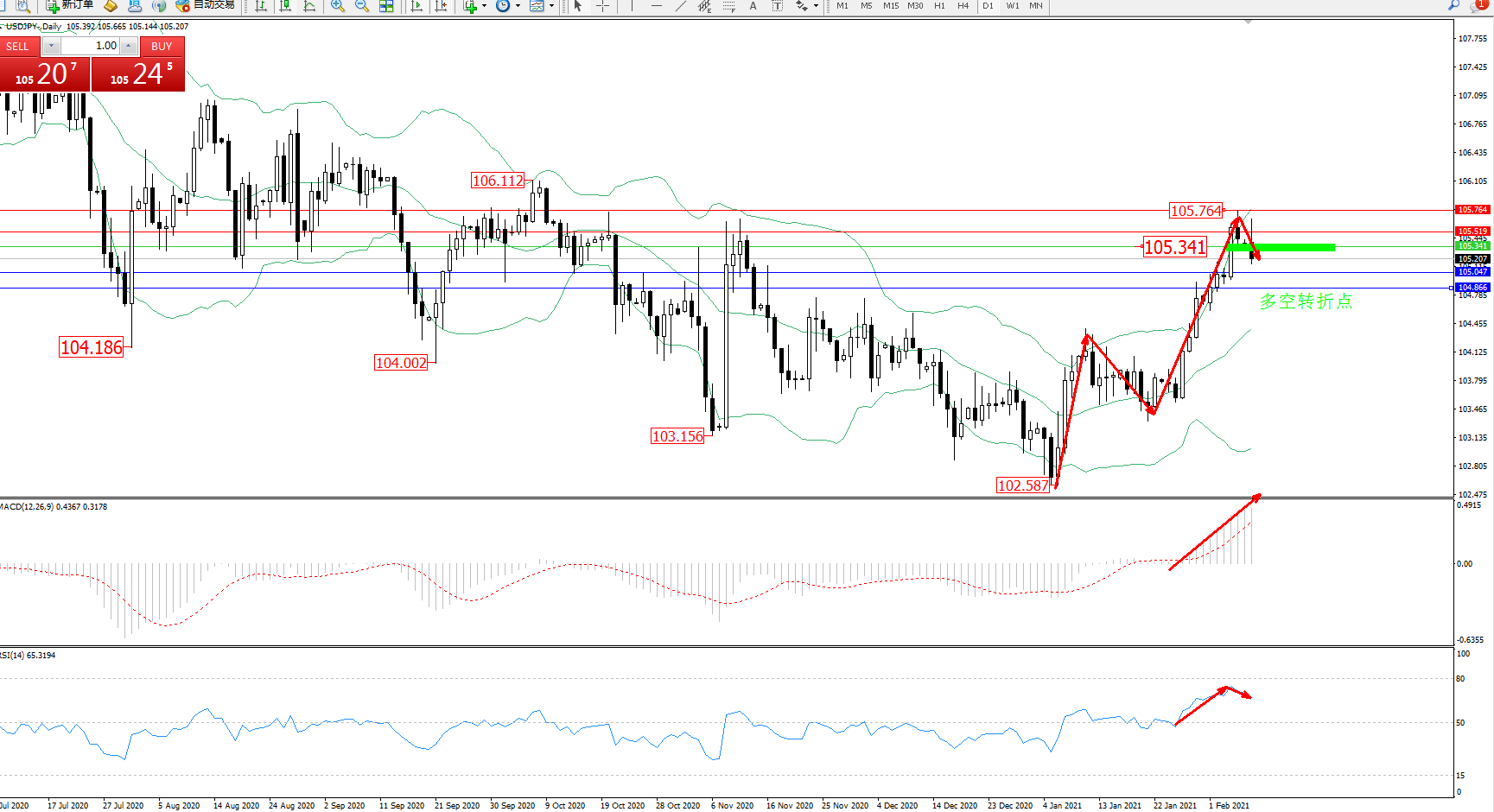 多空转折点:105.341