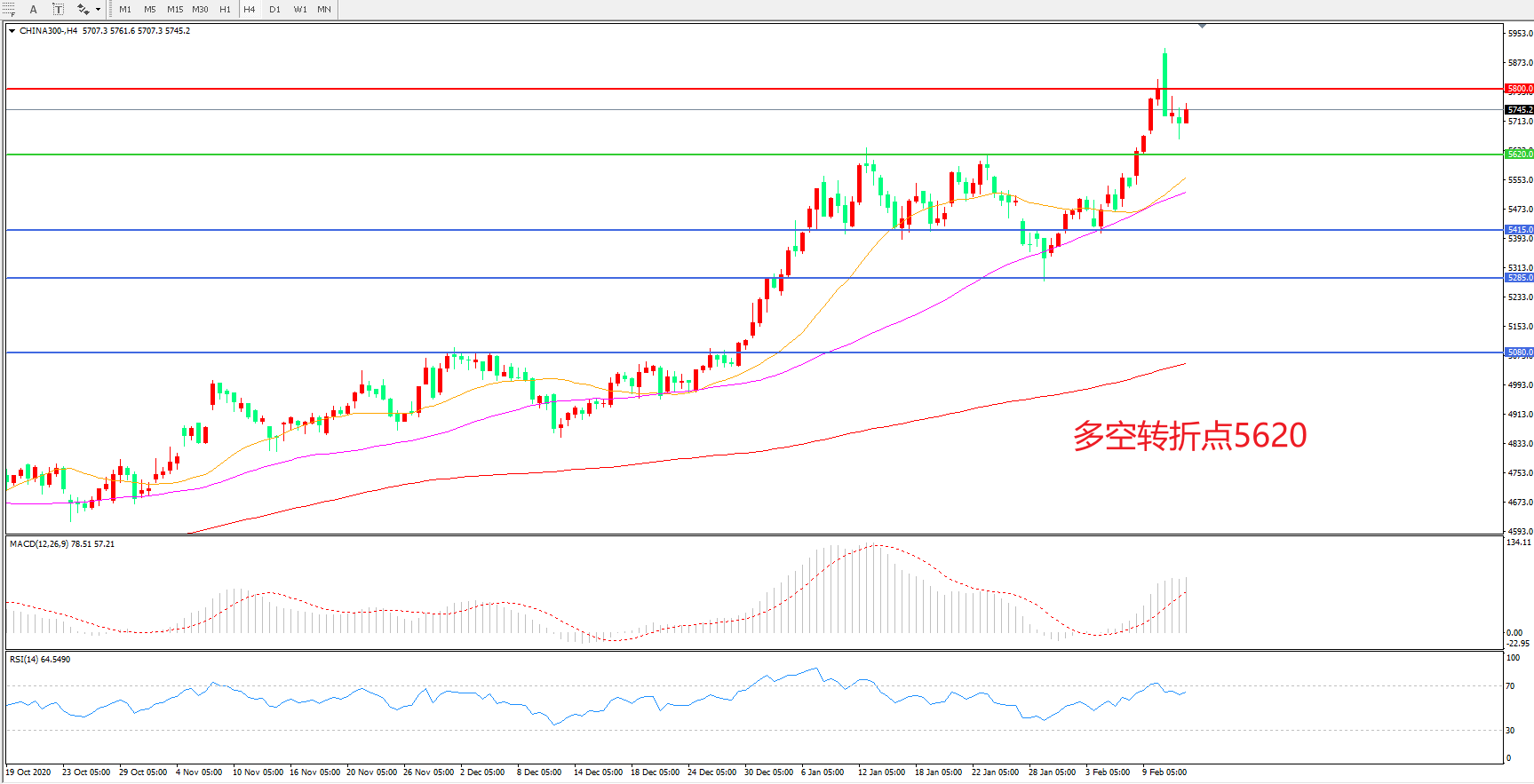 多空转折点:5620.00