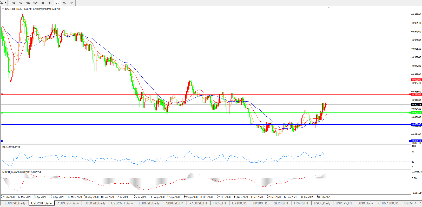 美元兑瑞郎USDCHF    日线图: