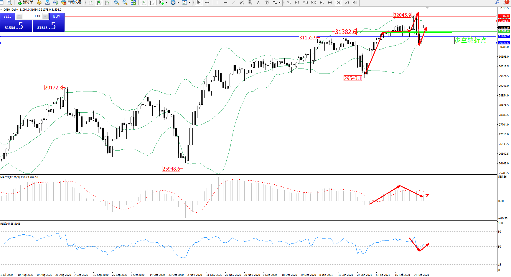 交易策略:31382上方看涨,目标31801、31987