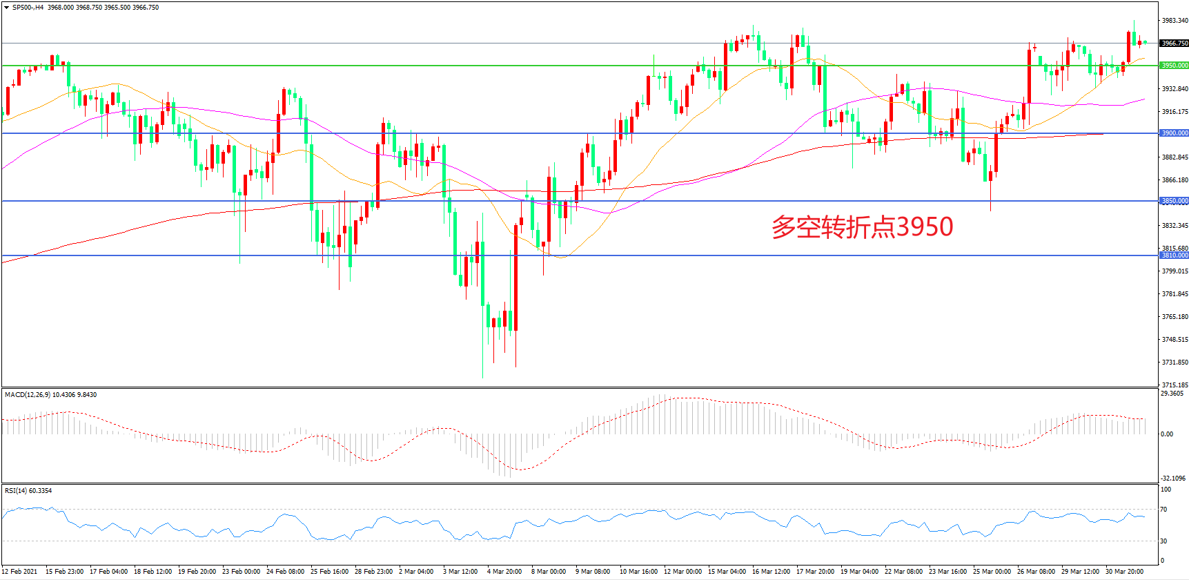 多空转折点:3950.00