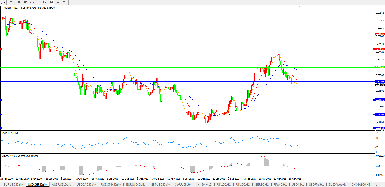 美元兑瑞郎USDCHF    日线图: