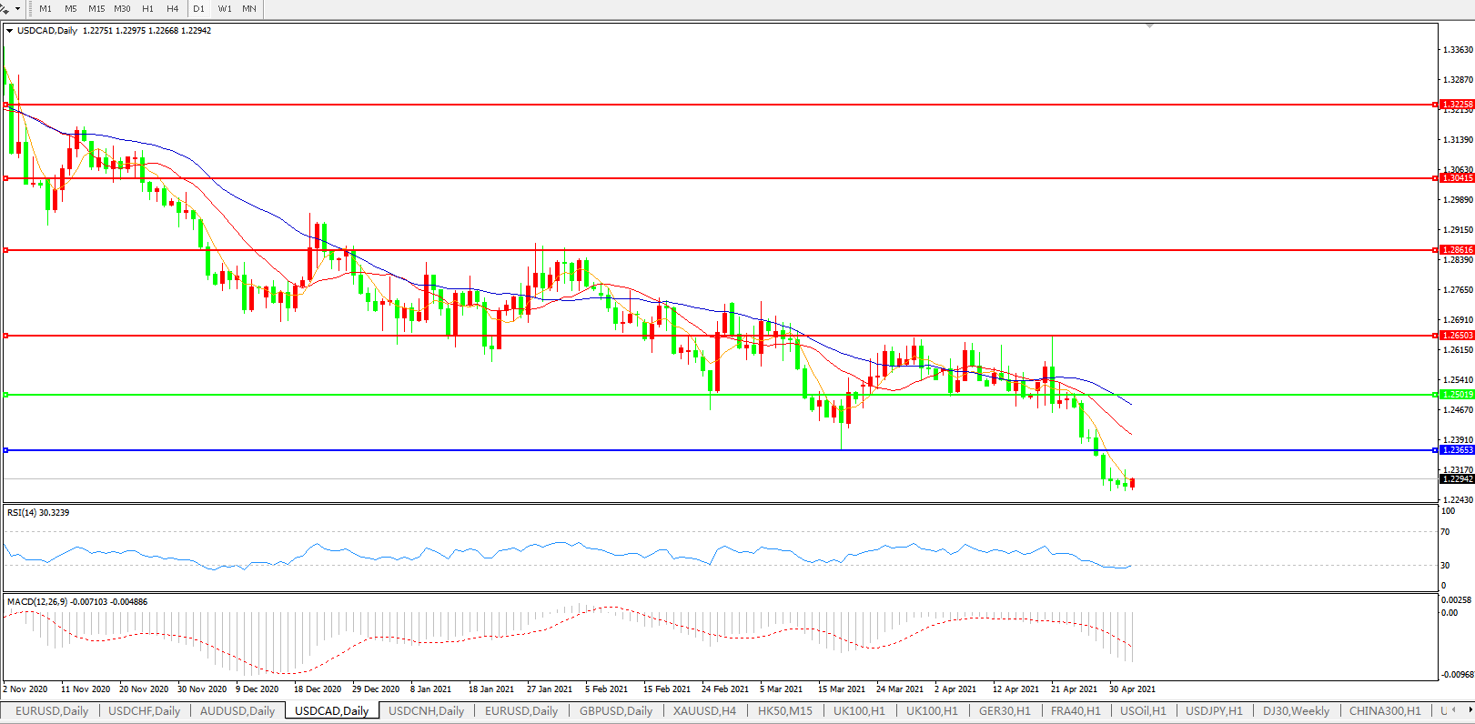美元兑加元USDCAD 日线图:
