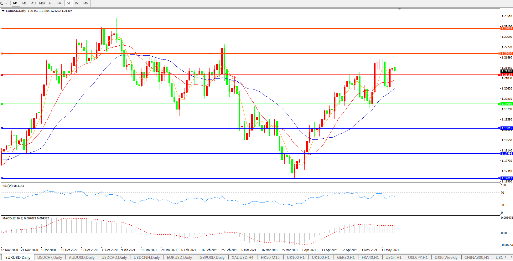 欧元兑美元EURUSD   日线图: